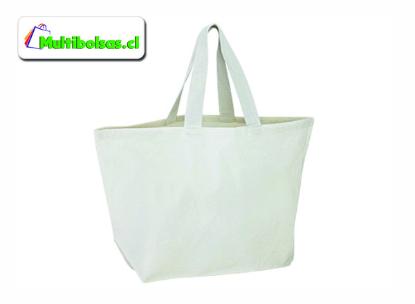 Bolsa grande 100% Algodón natural de 150g/m2, modelo "Burma". Manillas cintas de Algodón natural de 50 x 4 cm. aprox. c/u.