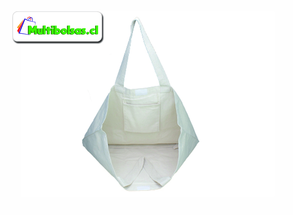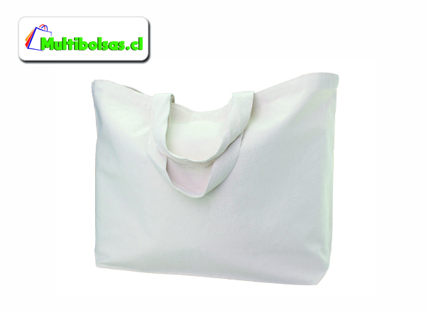 Bolsa grande 100% Canvas Algodón natural de 10oz. Manillas cintas de Algodón natural de 50 x 4 cm. aprox. c/u. Incluye cierre velcro interior central y bolsillo interior de 15x15 cm.
